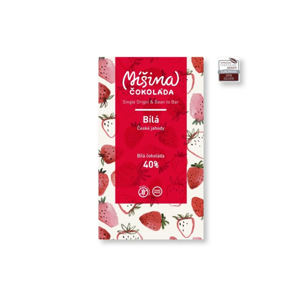 Bílá čokoláda 40% s českými jahodami 50gnedostupné165 Kč/ ks