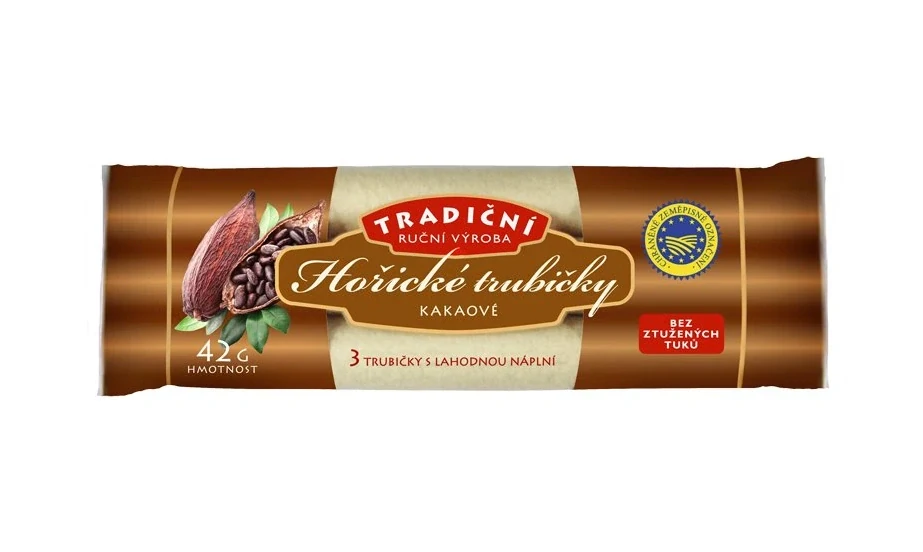 Hořická trubička s kakaovou náplní je sladkost, která v sobě nese poctivost a tradici. Ručně stáčená tenká oplatka ukrývá krémovou kakaovou náplň, která potěší všechny milovníky jemné, ne příliš sladké chuti.