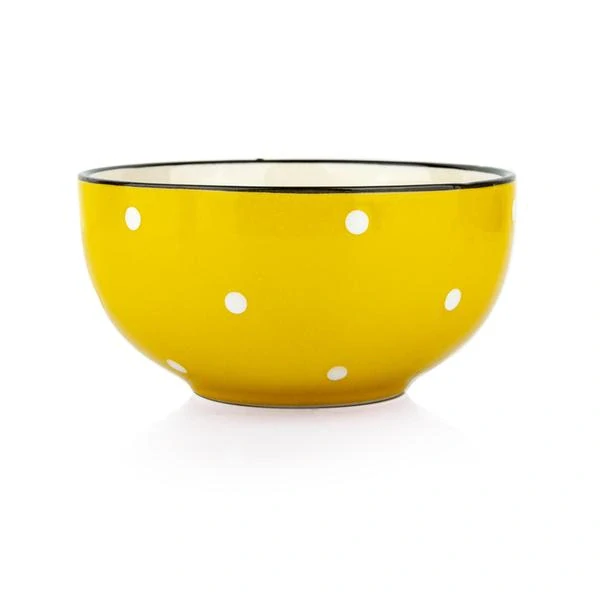 Oživte svůj stůl touto veselou keramickou miskou ve slunečně žluté barvě s bílými puntíky.Její hravý design přináší radost do každodenního stolování a dodává šmrnc každému pokrmu.