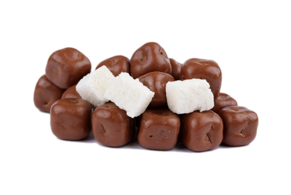 Tyhle kokosové kostky v mléčné čokoládě jsou přesně to, co potřebuješ, když tě honí mlsná. Uvnitř se ukrývá voňavý a šťavnatý kokos, který je obalený do jemné vrstvy mléčné čokolády – ne příliš sladké, ale krásně vyvážené. Skvělé jako rychlá pochoutka k odpolední kávě, na výlety nebo jen tak – pro radost. Pokud hledáš něco, co kombinuje exotiku, křupavost i čokoládovou něhu, právě jsi to našla.