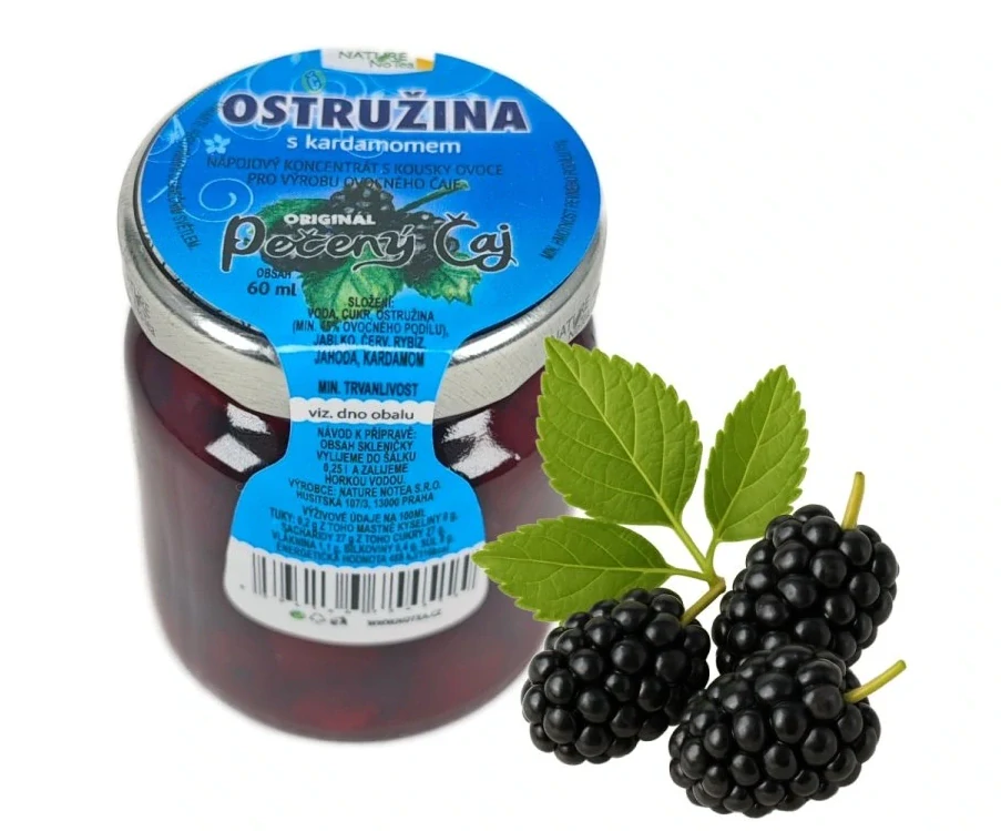 Poznej chuť lesa v každé dávce s Notea pečeným čajem Ostružina s kardamomem. Každá 60 ml porce obsahuje minimálně 45 % ovoce – šťavnaté ostružiny obohacené o jablko, černý rybíz a jahodu, osvěžené jemným kardamomovým tónem. Bez umělých aromat, barviv či konzervantů a přirozeně bez kofeinu. Koncentrát vzniká tradiční metodou pečení, která zachovává celistvé kousky ovoce a plnou chuť.