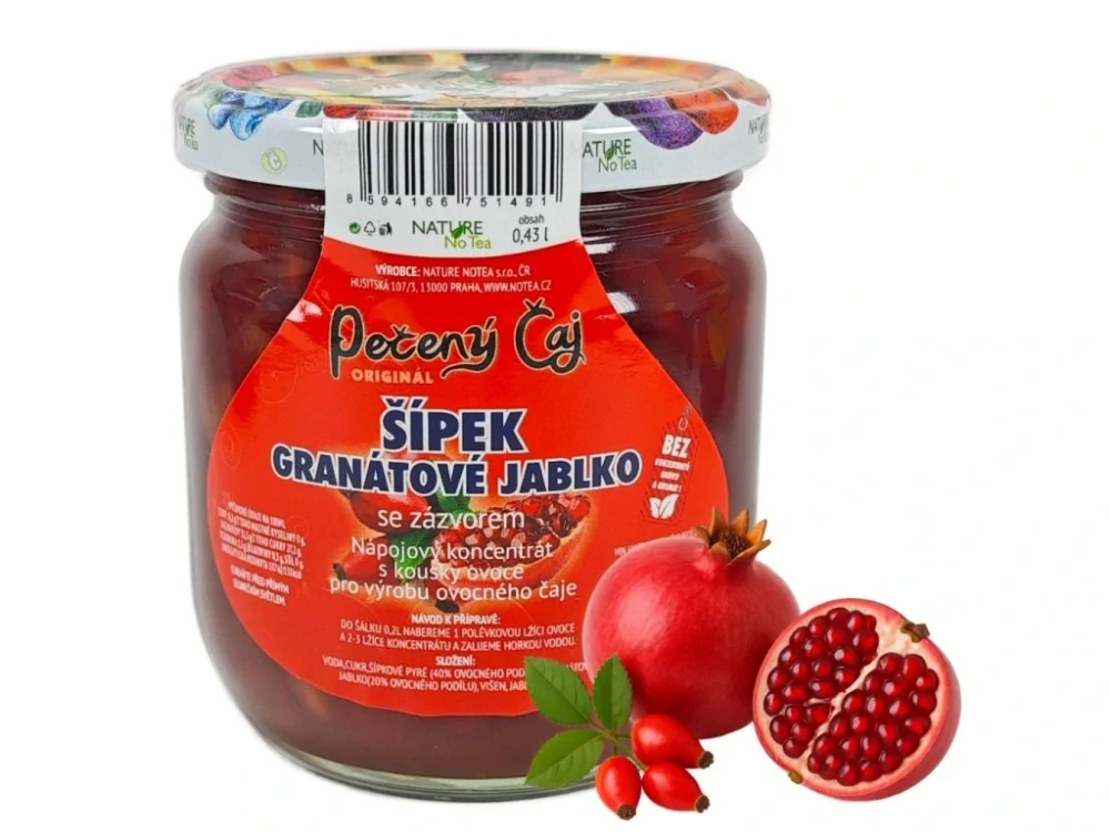 Pečený čaj Notea - Šípek a Granátové jablko se zázvorem 430mlskladem 5 ks96 Kč/ ks