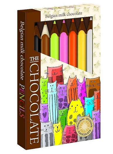 Čokoládové pastelky T-SEVERKA Kočky jsou skvělým příkladem toho, že sladkost může být nejen chutná, ale i zábavná. Každá pastelka je vyrobena z delikátní belgické mléčné a bílé čokolády s jemnou texturou a bohatou chutí, která se rozplývá na jazyku.