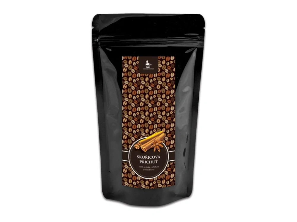 Složení: zrnková káva 100% Arabica, aroma skořice (4%)